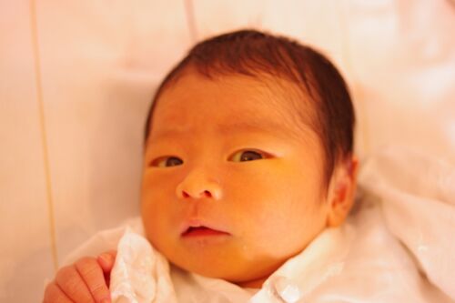 ご無沙汰しておりました。 案の定25日の前駆陣痛から始まって 26日の朝7時50分に玉のような男子を出産してまいりました。 カメラを向けるとこのようにものすごく怪訝な顔をする子でございます。 新生児でその縦ジワはないと思うなー!しかし、三十路…